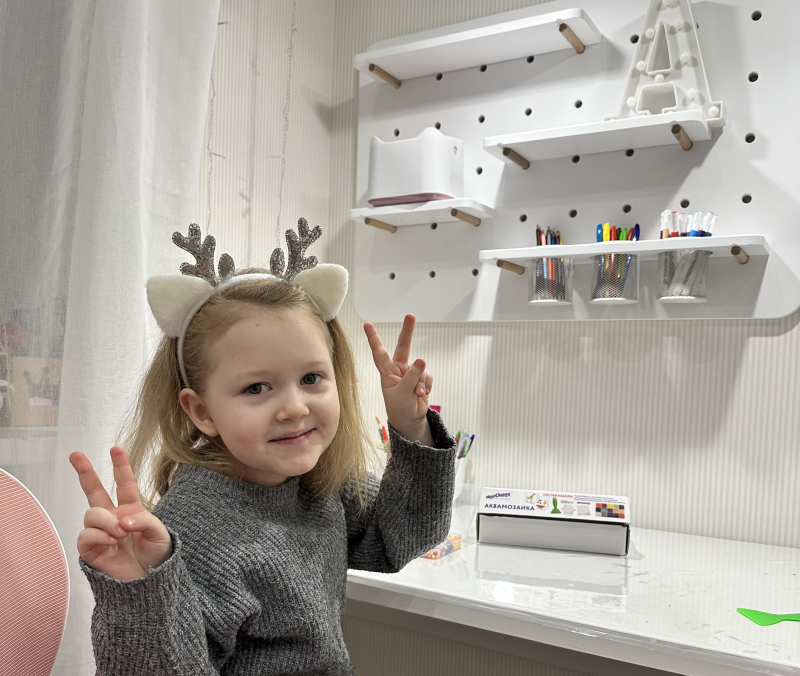 Чтобы поддержать ее самостоятельность и создать по-настоящему комфортное рабочее пространство для учебы и любимого хобби, родители мечтают организовать для нее специальную зону перед столом с пегбордом (перфорированной панелью). На него можно будет удобно развесить все необходимое: канцелярию, инструменты для творчества, органайзеры для алмазной мозаики. Это поможет Алисе легко поддерживать свой порядок, быстро находить нужные вещи и еще больше полюбить свое рабочее место.