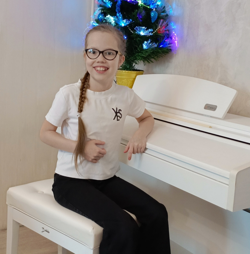 Алсу 10,5 лет и у нее редкое генетическое заболевание - ахроматопсия. Это очень сложное врожденное и неизлечимое заболевание. Алсу растет творческой личностью. Она поступила в музыкальную школу на фортепиано, ходит в бассейн, любит рисовать и читать. Каждый год Алсу с нетерпением ждёт Нового Года. Она очень много занимается на фортепиано, сочиняет свои музыкальные произведения. Дома у нее есть свой музыкальный инструмент, на котором Алсу занимается. На Новый Год она мечтает получить белую банкетку под свое фортепиано.