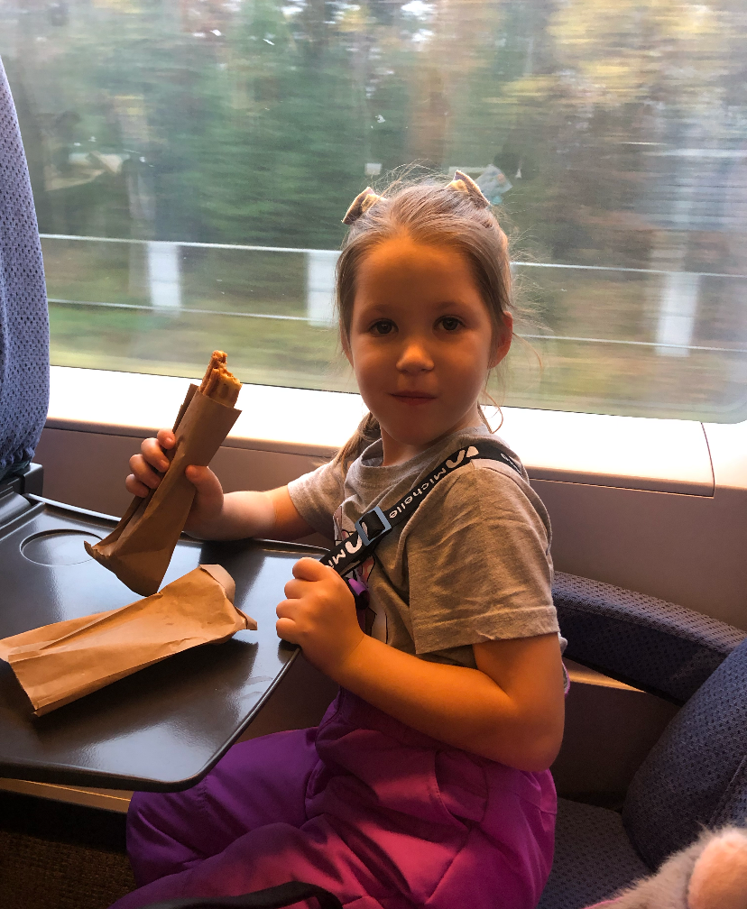 "Этим летом,- пишет Олеся,- дочка впервые прокатилась на аэроэкспрессе и была в полном восторге. Красный поезд, стремительно мчащийся по рельсам, стал для нее воплощение волшебства. Дочка с восхищением смотрела в окно и мечтала о том, как было бы здорово иметь такую игрушку.