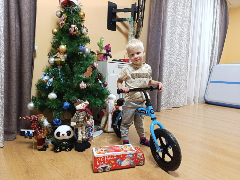 На вопрос, что бы ты хотел получить от Деда Мороза, Ивн ответил: "Я мечтаю о беговеле и о большооой конфете".