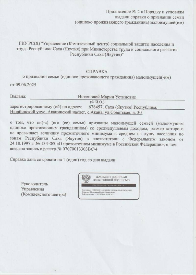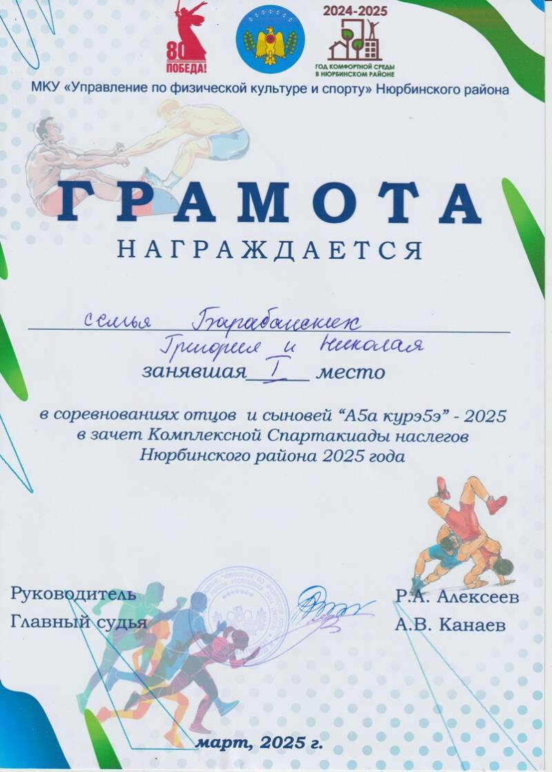 В нашей семье пятеро детей: 4 мальчика и 1 девочка, в семье я старший ребенок. Среди детей 3 школьника, 1 дошкольник и 1 младенец. Младший брат Тимур учится в 8 классе, хорошист учебы, занимается мас-рестлингом; единственная сестренка Сардаана в этом году пошла в первый класс, она у нас очень активная и любит рисовать. Тургуну 4 года, он посещает детский сад «Мичээр», в этом году идет в старшую группу. А самый младшему братику Арылхану всего 7 месяцев, поэтому наша мама сидит по уходу за ребенком. Наши родители работают в школе, где мы учимся. Наша мама Мария Устиновна работает учителем русского языка и литературы, а также завучем. Наш папа Николай Николаевич работает учителем физической культуры и ОБЗР. Как старший ребенок в семье с младшим братом Тимуром оба помогаем родителям по дому, по хозяйству. Мы живем в маленьком и уютном селе, где все друг друга знают в лицо, где у всех хорошие отношения между собой. Наше село расположено около большого озера Дженкюдэ (Денгкюдэй), которое получило охранный статус регионального значения. В нашем селе Акана проживает около 300 человек. В школе около 70 учеников и 24 учителя.