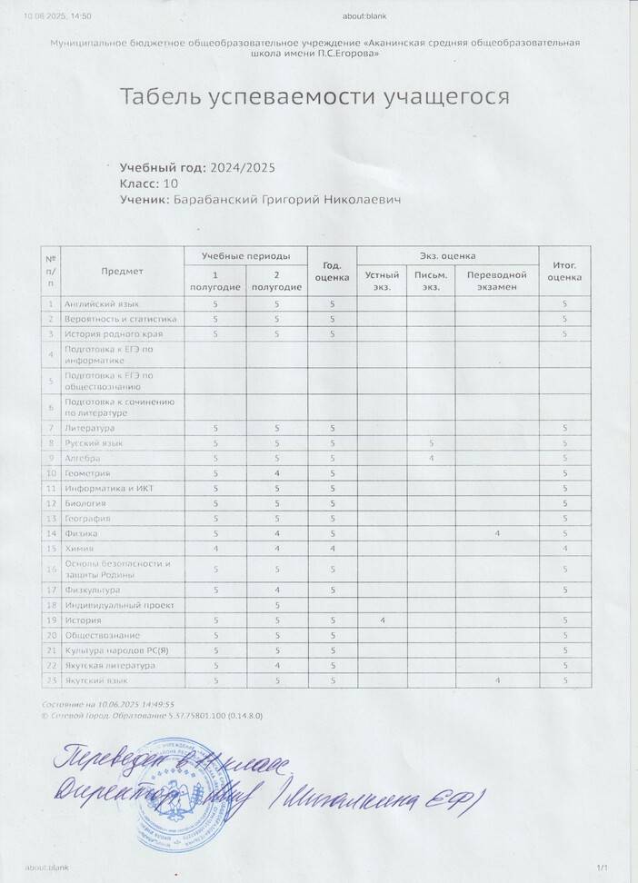 Здравствуйте! Меня зовут Барабанский Григорий Николаевич, я родился 1 апреля 2008 года в селе Оросу Верхневилюйского района Республики Саха (Якутия). В 2015 году я поступил в 1 класс в Аканинскую СОШ им.П.С.Егорова. С самого юного возраста интересуюсь электроникой, музыкой и политикой. В этом году я сам собрал компьютер по комплектующим, установил ПО через флешку, поставил в старый ноутбук высокоскоростной SSD накопитель. В прошлом году купил недорогую гитару и научился на ней играть. В будущем я хотел бы поступить на юридический факультет, поэтому на ЕГЭ буду сдавать историю и обществознание.