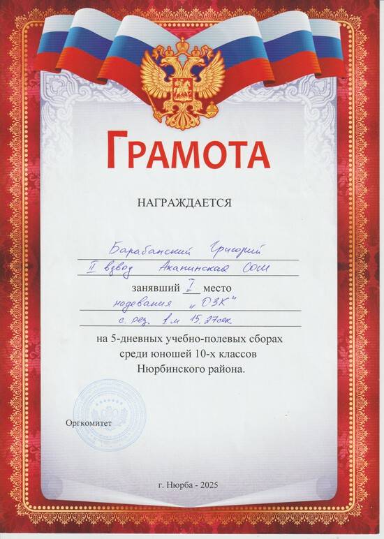 Мне нравится участвовать в различных школьных олимпиадах, поэтому всегда стараюсь пройти в районный этап, а после в региональный. На региональном этапе ВСОШ по ОБЖ принимал участие два раза, который был переименован в ОБЗР. Два раза я становился призером по предмету ОБЖ.