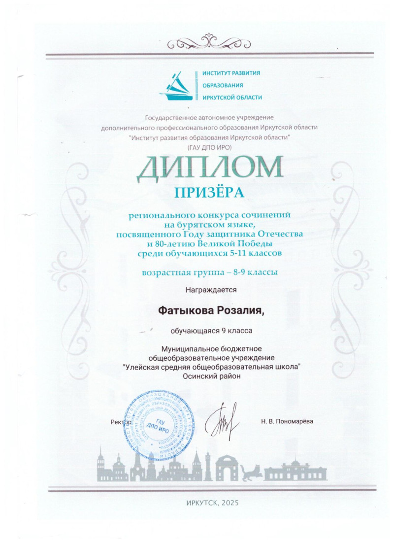 С глубокой благодарностью, Фатыкова Розалия Ренатовна".